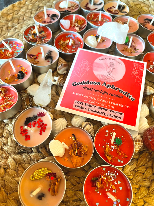 Aphrodite's Embrace: Ritual Tea-Light Candles for Love, Beauty, Divine Feminine Energy, Passion and Sensuality" - Set of 25 candles