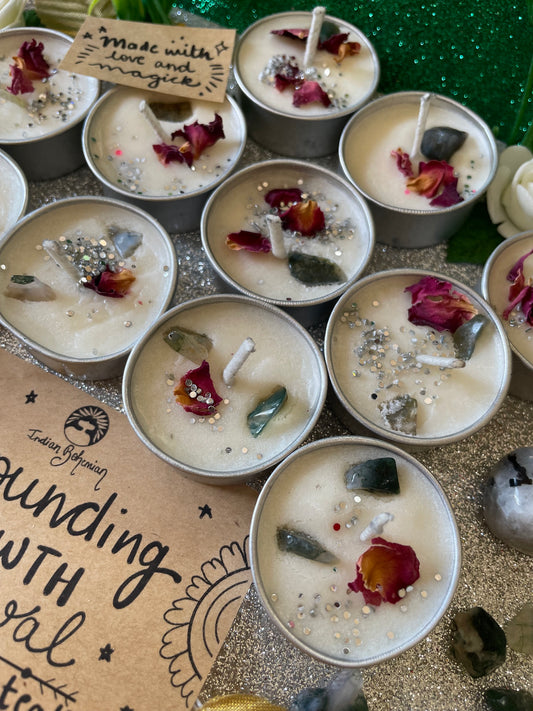 Grounding | Growth | Renewal - Ritual Tea-light Candles - Set of 25pcs - Tree Agate Crystal